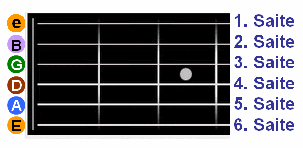 Manche zählen die Saiten von der dicksten bis zur dünnsten durch.Da es aber weltweit üblich ist, bei der hohen e-Saite zu beginnen,