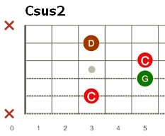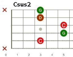 - Danach nehmen wir den sus2-Akkord unter die Lupe
